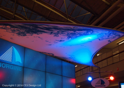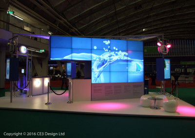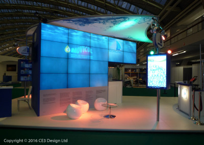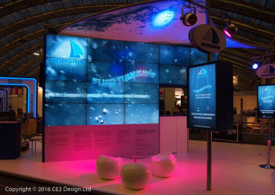 We created a double-sided cantilevered video wall – an industry first, all within the 60sqm space. We also designed and programmed the videowall content, an impressive, almost hypnotic, rolling presentation. It was an instant hit.